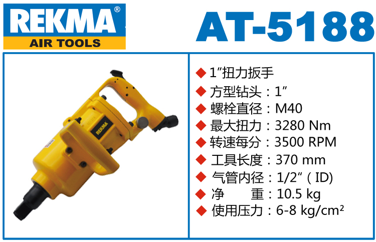REKMA AT-5188L進(jìn)口風(fēng)炮特點(diǎn):(重力壓鑄外殼,強(qiáng)度更高不變形,提高耐用度)