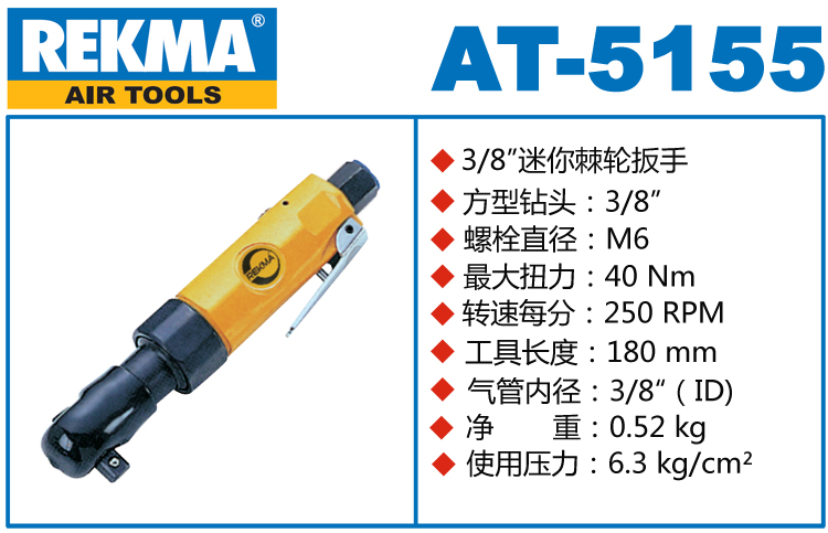 REKMA AT-5155氣動(dòng)棘輪扳手特點(diǎn):(重力壓鑄外殼,強(qiáng)度更高不變形,提高耐用度)